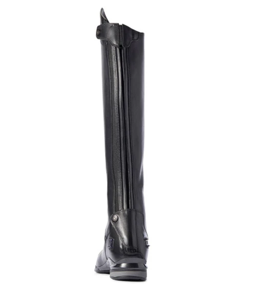 Just as important, the Ariat Nitro Max Tall Riding Boot is beautiful and offers an ideal fit. The profile is clean and simple, with low key details. Premium full grain leather, black leather lining, and an oiled panel along the inner calf add up to durability and performance. The top of the foot has panel inserts that allow your foot to flex while adding visual interest. The Nitro Max has a full length sturdy YKK zipper with heel tab and secure leather and elastic tab at the top. An elastic panel curves down the side of the zipper to assure a close fit. Riders will love the innovative technology of the Ariat Nitro Max Tall Boot and its classic good looks with modern flair.