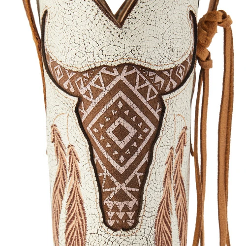 Ariat Round Up Southwest StretchFit Western Boot has bold style and built-in stretch to fit a wider range of calf sizes. The fanciful steer head, feathers, and fringe trim stand out beautifully with the two-tone color scheme. The Ariat StretchFit panels under the pull tabs give an additional inch of room to these Round Up Western boots.
