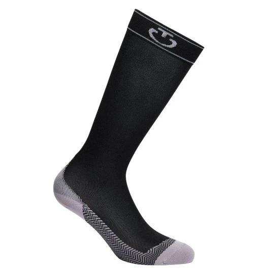 Cavalleria Toscana Sports Socks are knee high premium riding socks made with a highly breathable knit that allows cooling and quick drying comfort. Equestrian socks for men and women are a solid color with contrast heel and toe, herringbone sole, plus CT logo and striping at the cuff.