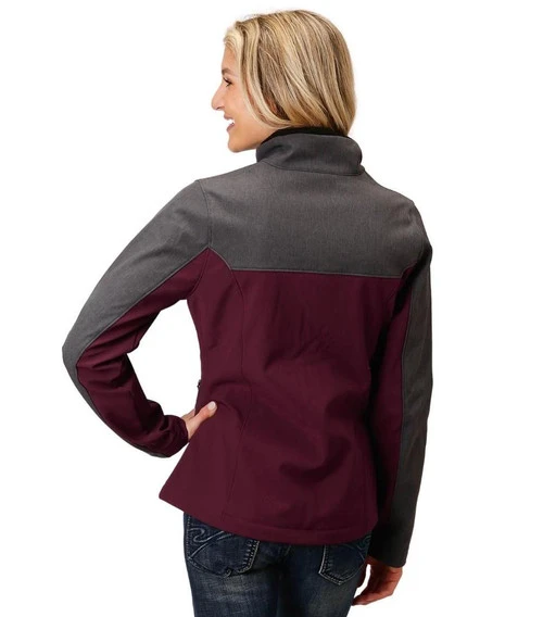 Ladies Roper Tech Softshell Jacket has a sleek modern look with stretchy comfort for riding and outdoorsy activities. The microfleece backed softshell is water resistant, wind resistant, breathable, and warm. Women’s casual riding jacket from Roper has a striking color block design in charcoal and wine. The Tech Softshell Jacket will make the transition to colder months as easy as can be!