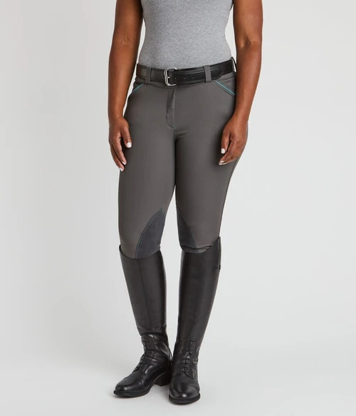 The Piper Evolution Knee Patch Breeches are here at Mary’s in the latest new fabric option. These ladies riding breeches have everything you love about Piper in a technical fabric that has just the right amount of stretch and structure. With shape retention technology, Piper breeches are meant to feel supportive when first put on and will quickly mold to your perfect fit. The 2.25″ wide contoured waistband eliminates gaps and accommodates your favorite riding belts.